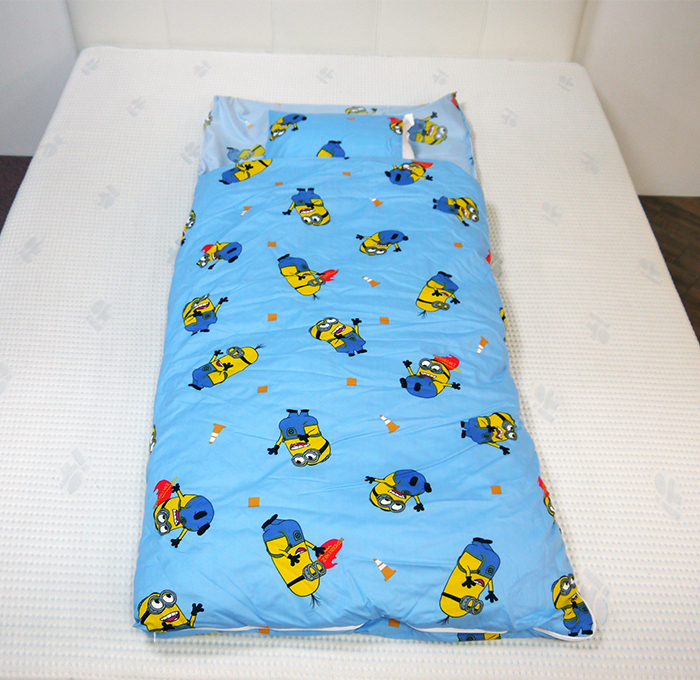 ◆內容物:兒童睡袋x1,小枕心x1,被胎x1,手提袋x1