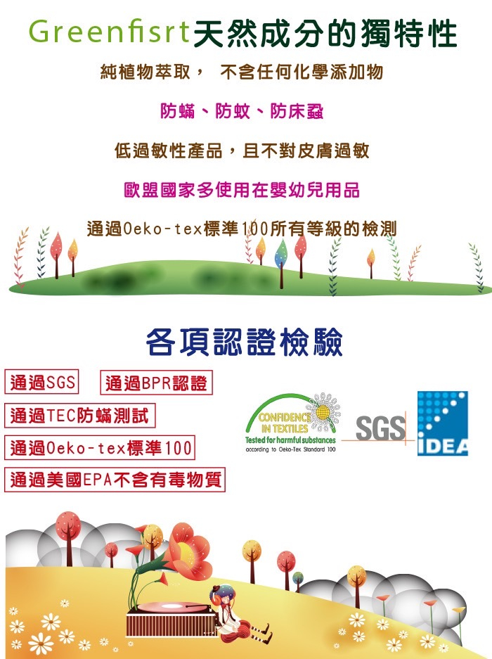 防螨、防蚊、防床蝨,低過敏性產品,且不對皮膚過敏