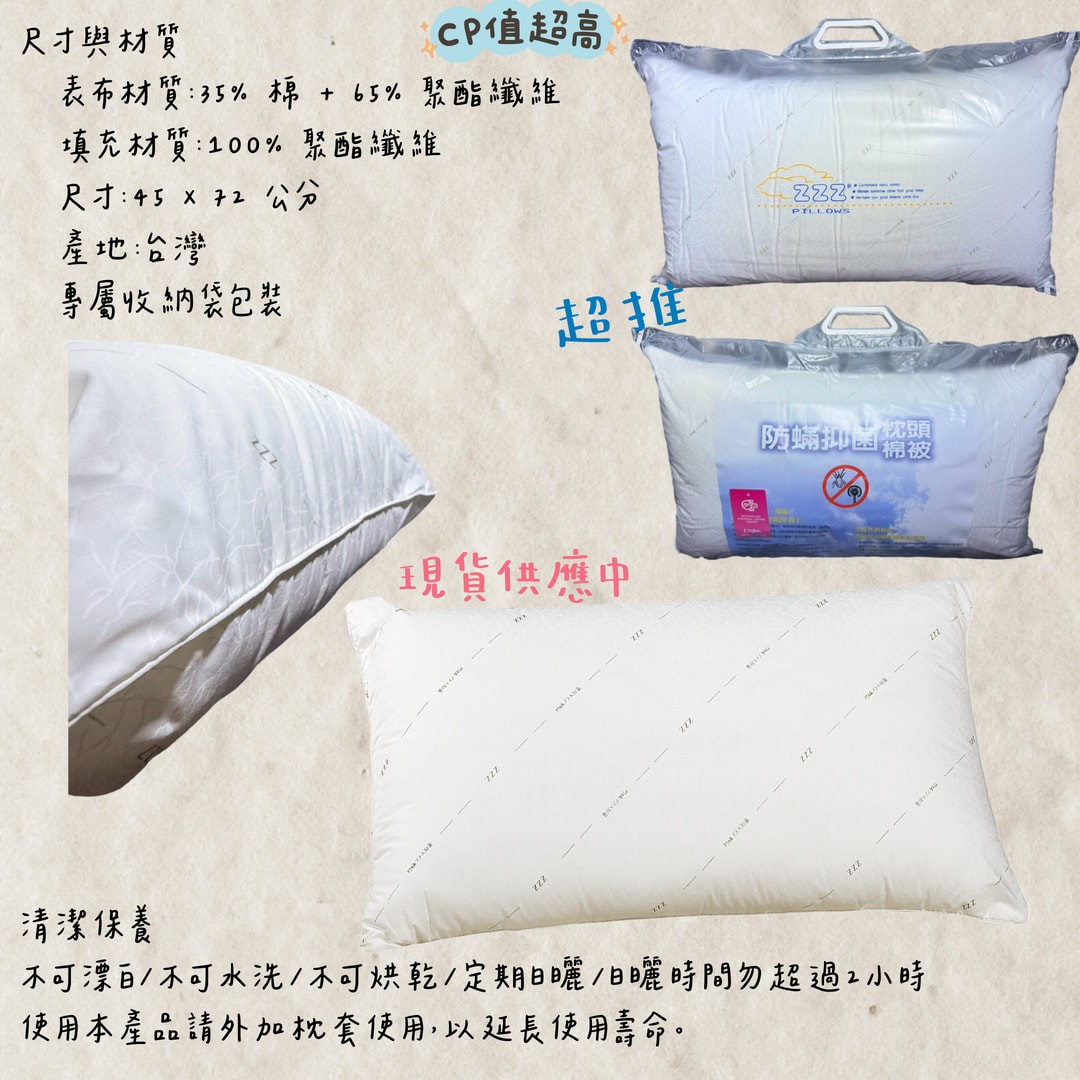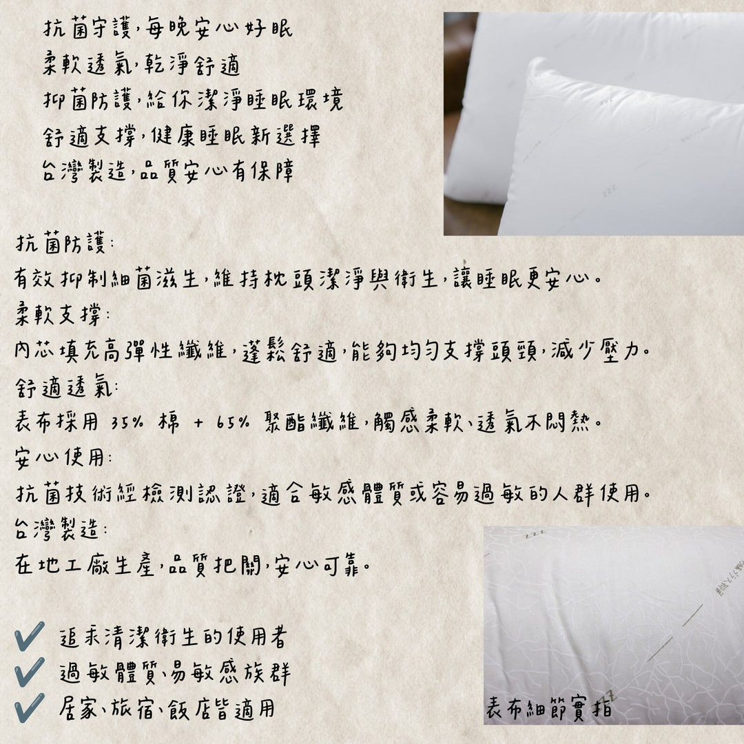 【爽眠工房】ZZZ Bedding 防蟎抗菌枕 透氣舒適 抗菌守護 每晚安心好眠 台灣製造 枕頭 純棉 柔軟 支撐