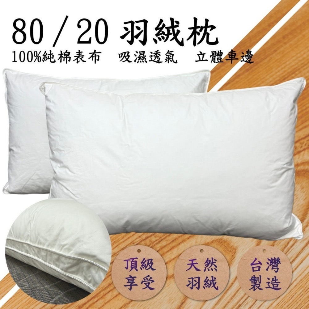 【爽眠工房】80 / 20 完美比例 頂配級白羽絨 立體包邊羽絨枕 100%純棉表布 附贈 臺灣製造 60s天絲枕頭套