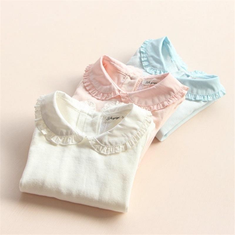 春秋薄款女童 純色内搭衣 長袖內搭T恤 兒童長袖 公主領內搭服 娃娃領內搭衣 T恤 花瓣領 上衣中小童百搭女孩