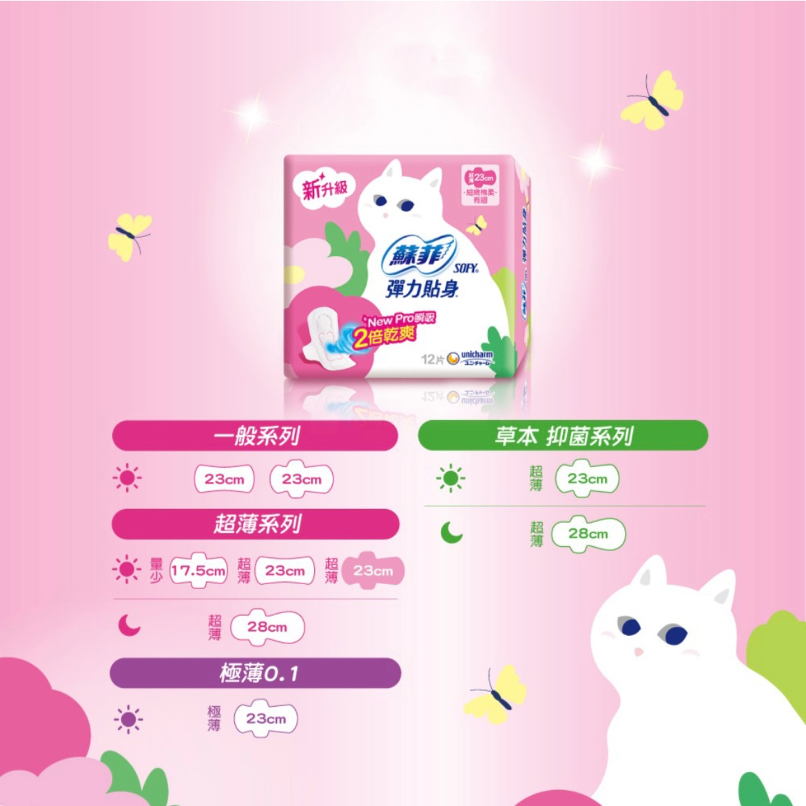 SOFY蘇菲 超薄系列 彈力貼身 細緻棉柔日用衛生棉 蝶翼型, 23cm, (12片x4包)
