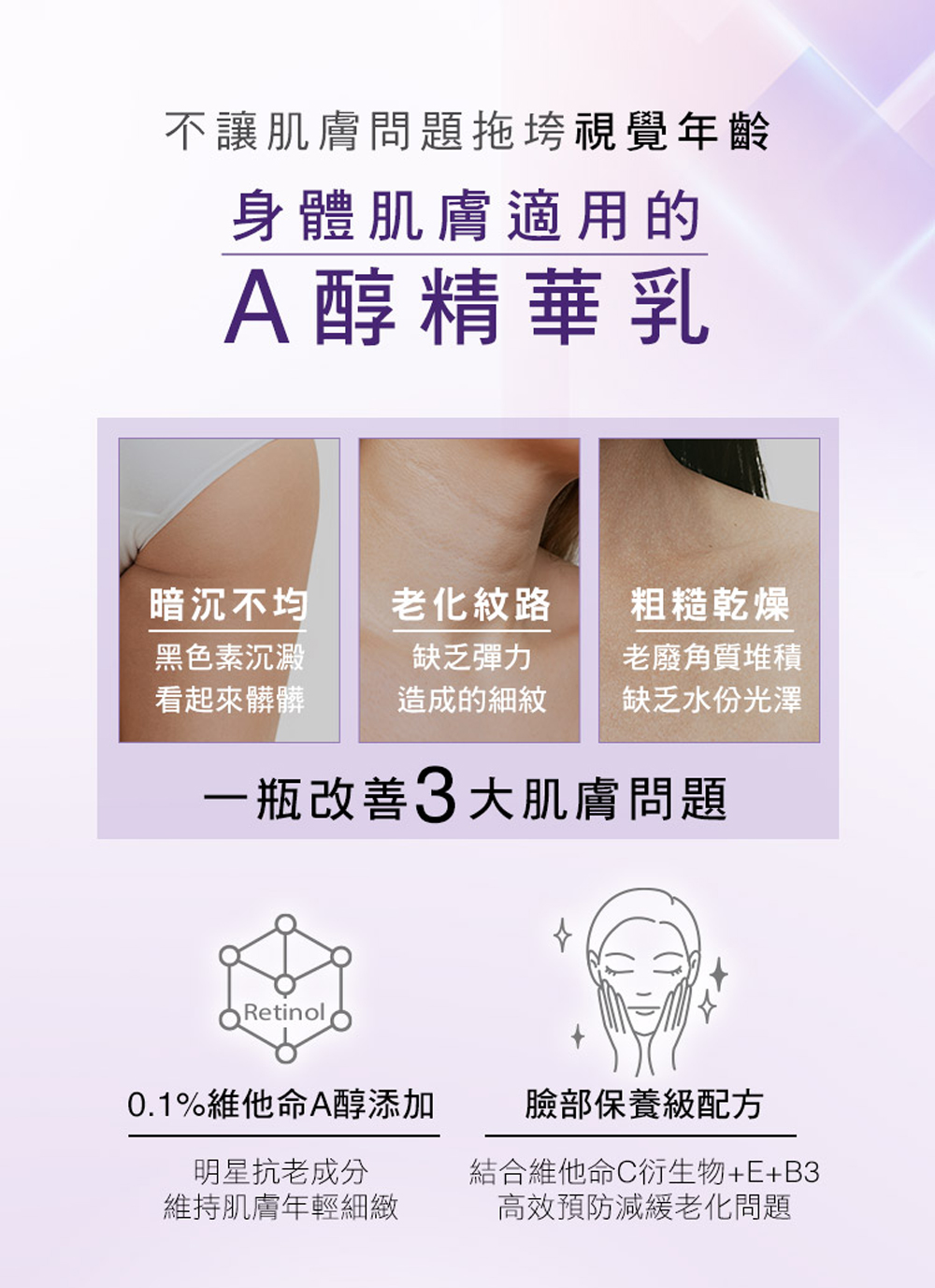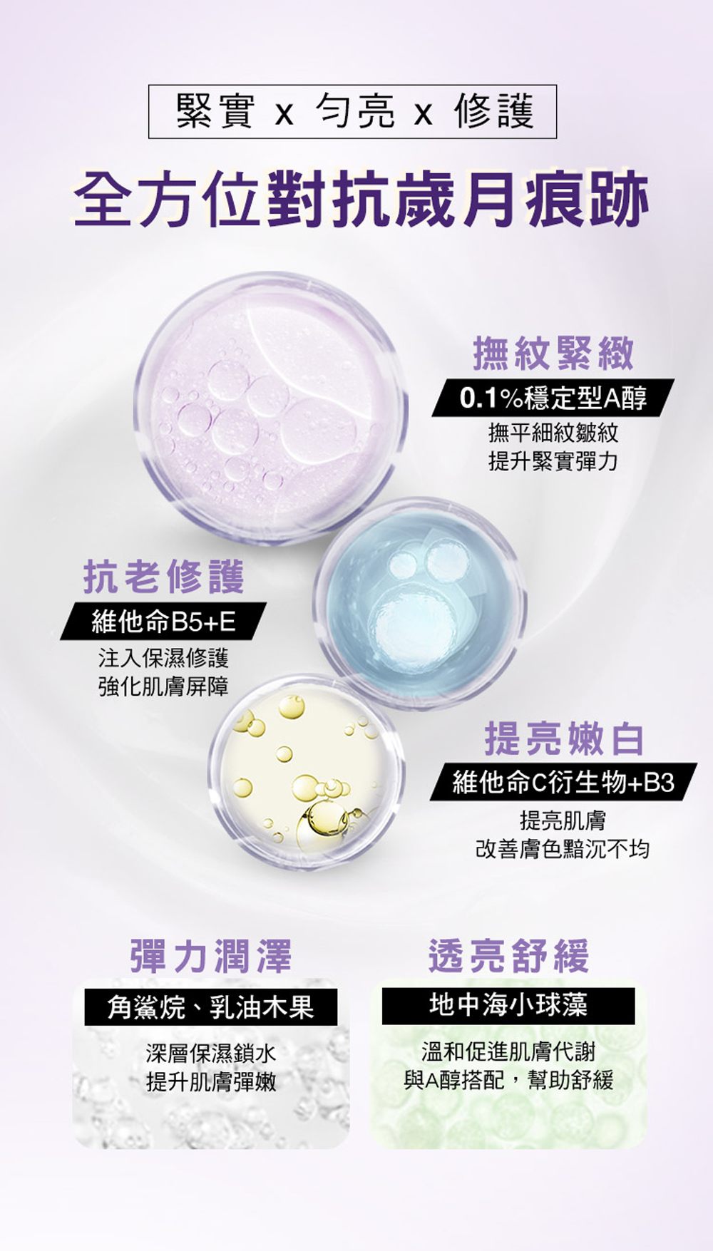 適用膚質:乾燥、粗糙、暗沉、老化紋路肌膚。