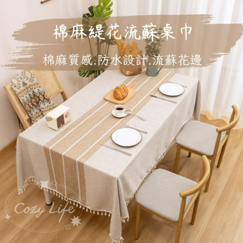 【 Cozy life 可喜生活 | 棉麻緹花流蘇桌巾】