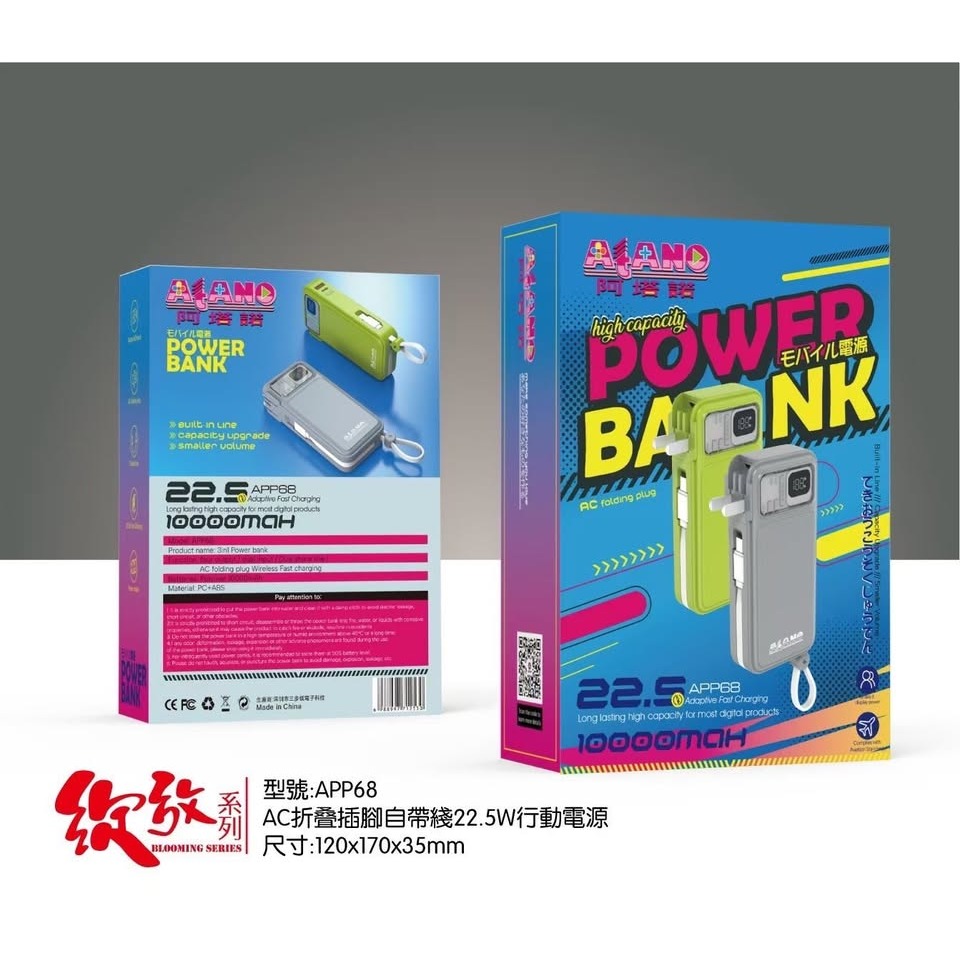 1️⃣自帶AC折疊式充電插頭/22.5 W快充輸出孔/容量一萬亳安