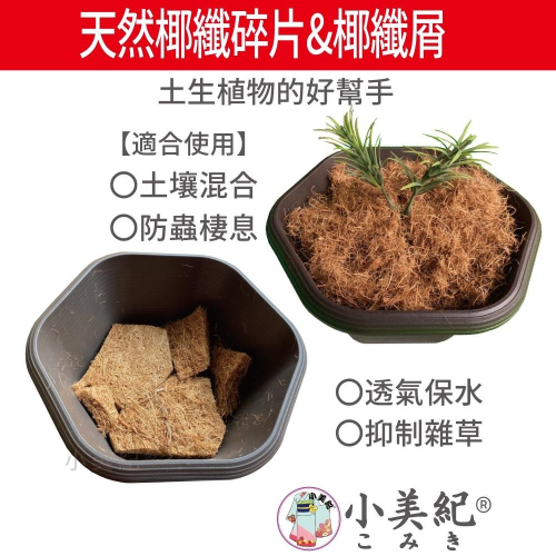 O除了可以美化盆栽的美觀,使用椰纖屑可覆蓋土壤表面,防止灰塵不起來,昆蟲也較不易侵入花盆內的土壤。