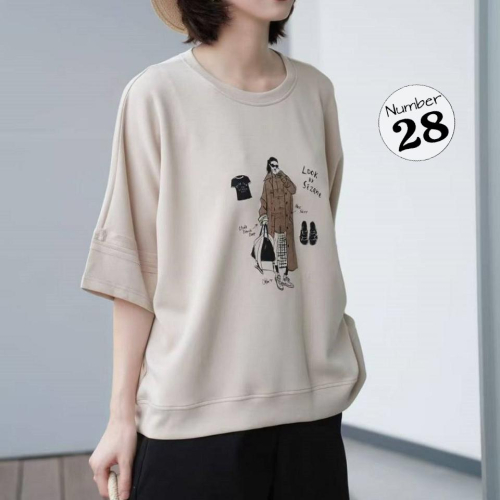 Number28 - 韓系印花七分袖太空棉上衣 286312