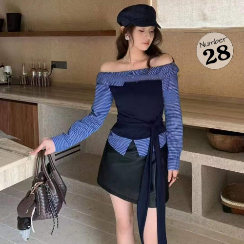 【購物須知】 ★隨貨附發票,可存載具/捐贈(下單請備註/私訊告知)★ ⚠退貨時請務必將"發票證明聯正本"一併退回⚠ 若未將發票退回則無法受理退貨。 整筆訂單退貨➡全部商品及發票退回 部分商品退貨➡退貨商品及發票退回,賣場將重新開立發票 (可選擇捐贈/存入載具/若無載具將於中獎後以郵局掛號方式把中獎發票正本寄出) ---------------------------------------------------------------------------------------------------------------------------------------------------------------------------------- ♥【全館現貨】♥ 現貨商品出貨日期為訂單成立後1~4個工作天,視訂單量安排出貨 ,若售完則需追加約7~15日不再另行通知 【為避免爭議,包裹拆封請全程錄影,若有缺件/瑕疵請附上影片私訊小編唷】 ✨一字領綁結收腰長袖上衣✨ 性感的一字肩 腰部綁結很顯瘦~ 很特別的格紋拼接 不同顏色搭起來都有不同的氣質 很適合包色回衣櫃選搭~ 手刀下單去♥ ★材質:棉+聚脂纖維,顏色:藍 紫★ ——————————————————————— 尺寸(cm) 領寬 胸圍  衣長 袖長  ———————————————————————  F   43-53 76-108  40  46 ——————————————————————— 🔴🔴圖片僅供參考,請依實拍照片為主🔴🔴 🔴🔴衣服收尾打結的線頭請勿裁剪,若因[人為裁剪]後造成商品損毀,一概不受理退貨🔴🔴 小叮嚀: ◆平鋪手工測量,尺寸表僅供參考,具體以實物為準。以上尺寸皆為人工測量,尺寸誤差1~3公分屬正常範圍,敬請見諒^^" 單位:cm ◆商品實色請依[實拍照片]為主,商品色差可能因手機相機拍攝/燈光角度/每個人的螢幕顯示器/手機顯示不同而有差別是正常現象唷! ◆非商品瑕疵定義:每批貨品因為製程時間不同、做工品質不定、有時會有1-2cm長度改變、內襯改變、1~2cm小髒汙、小黑點、染色色差、縫線、鈕釦改色等情況,實屬無可避免之正常情形 1.收到商品後若有問題需退貨,請先申請退貨【勿完成】訂單,並保持商品全新未下水及包裝完整依退貨相關程序完成退貨。 2.若產品為小可愛/內衣/內褲/安全褲...等貼身衣物,屬個人衛生用品,基於個人衛生考量,拆封後【不提供】鑑賞期服務 ◆購買前請一定要參考《尺寸表》哦!每家廠商提供的商品版型/到貨批次不同可能會不一樣,請務必確認尺寸可接受再下訂唷! ◆超商寄件有材積限制,若包裹超材/超重會通知更改訂單 ◆若有未取貨/非商品瑕疵退貨(賣場將自行判別)、惡意評價、將已拆封貼身衣物退回、商品下水過、退貨包裝不完整等紀錄,將列入賣場黑名單,Number28有權不再服務您。