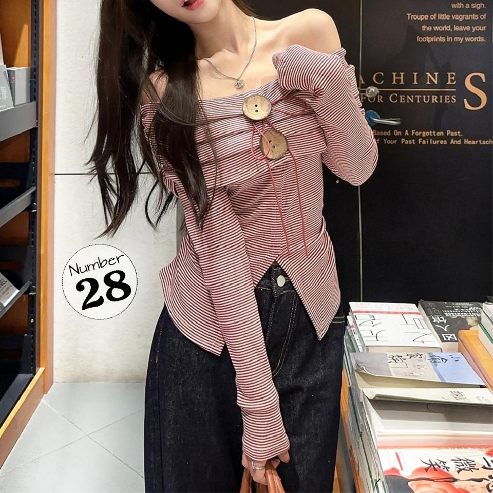 【購物須知】 ★隨貨附發票,可存載具/捐贈(下單請備註/私訊告知)★ ⚠退貨時請務必將"發票證明聯正本"一併退回⚠ 若未將發票退回則無法受理退貨。 整筆訂單退貨➡全部商品及發票退回 部分商品退貨➡退貨商品及發票退回,賣場將重新開立發票 (可選擇捐贈/存入載具/若無載具將於中獎後以郵局掛號方式把中獎發票正本寄出) ---------------------------------------------------------------------------------------------------------------------------------------------------------------------------------- ♥【全館現貨】♥ 現貨商品出貨日期為訂單成立後1~4個工作天,視訂單量安排出貨 ,若售完則需追加約7~15日不再另行通知 【為避免爭議,包裹拆封請全程錄影,若有缺件/瑕疵請附上影片私訊小編唷】 ✨(附綁繩)一字領前開岔長袖上衣✨ 彈性好又好穿搭 性感的一字肩 下擺有做開岔設計 很有特色的一款上衣~ 不同顏色搭起來都有不同的氣質 很適合包色回衣櫃選搭~ 手刀下單去♥ ★材質:棉+聚脂纖維,顏色:黑 咖 梅紅★ ——————————————————————— 尺寸(cm) 領寬 胸圍  衣長 袖長  ———————————————————————  F   33-55 60-100  44  55 ——————————————————————— 🔴🔴圖片僅供參考,請依實拍照片為主🔴🔴 🔴🔴衣服收尾打結的線頭請勿裁剪,若因[人為裁剪]後造成商品損毀,一概不受理退貨🔴🔴 小叮嚀: ◆平鋪手工測量,尺寸表僅供參考,具體以實物為準。以上尺寸皆為人工測量,尺寸誤差1~3公分屬正常範圍,敬請見諒^^" 單位:cm ◆商品實色請依[實拍照片]為主,商品色差可能因手機相機拍攝/燈光角度/每個人的螢幕顯示器/手機顯示不同而有差別是正常現象唷! ◆非商品瑕疵定義:每批貨品因為製程時間不同、做工品質不定、有時會有1-2cm長度改變、內襯改變、1~2cm小髒汙、小黑點、染色色差、縫線、鈕釦改色等情況,實屬無可避免之正常情形 1.收到商品後若有問題需退貨,請先申請退貨【勿完成】訂單,並保持商品全新未下水及包裝完整依退貨相關程序完成退貨。 2.若產品為小可愛/內衣/內褲/安全褲...等貼身衣物,屬個人衛生用品,基於個人衛生考量,拆封後【不提供】鑑賞期服務 ◆購買前請一定要參考《尺寸表》哦!每家廠商提供的商品版型/到貨批次不同可能會不一樣,請務必確認尺寸可接受再下訂唷! ◆超商寄件有材積限制,若包裹超材/超重會通知更改訂單 ◆若有未取貨/非商品瑕疵退貨(賣場將自行判別)、惡意評價、將已拆封貼身衣物退回、商品下水過、退貨包裝不完整等紀錄,將列入賣場黑名單,Number28有權不再服務您。