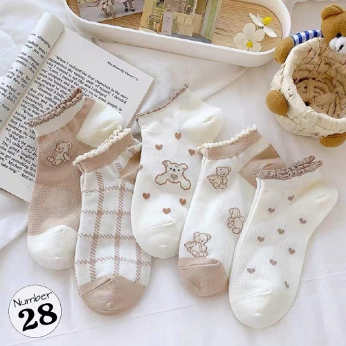 【購物須知】 ★隨貨附發票,可存載具/捐贈(下單請備註/私訊告知)★ ⚠退貨時請務必將"發票證明聯正本"一併退回⚠ 若未將發票退回則無法受理退貨。 整筆訂單退貨➡全部商品及發票退回 部分商品退貨➡退貨商品及發票退回,賣場將重新開立發票 (可選擇捐贈/存入載具/若無載具將於中獎後以郵局掛號方式把中獎發票正本寄出) ---------------------------------------------------------------------------------------------------------------------------------------------------------------------------------- ♥【全館現貨】♥ 現貨商品出貨日期為訂單成立後1~4個工作天,視訂單量安排出貨 ,若售完則需追加約7~15日不再另行通知 【為避免爭議,包裹拆封請全程錄影,若有缺件/瑕疵請附上影片私訊小編唷】 ✨ 可愛風愛心小熊襪子 ✨ 共有5種款式 微日系風格 小隻女看過來 喜歡趕緊帶回家吧~~ ★材質:棉+聚脂纖維,款式:(01愛心,02格紋,03格紋小熊,04愛心小熊,05小熊)★ ——————————— ⚠️尺寸表附在圖片最後⚠️ ——————————— 【本產品為貼身衣物屬個人衛生用品,基於個人衛生考量,拆封後不提供鑑賞期服務】 🔴🔴圖片僅供參考,請依實拍照片為主🔴🔴 小叮嚀: ◆平鋪手工測量,尺寸表僅供參考,具體以實物為準。以上尺寸皆為人工測量,尺寸誤差1~3公分屬正常範圍,敬請見諒^^" 單位:cm ◆商品實色請依[實拍照片]為主,商品色差可能因手機相機拍攝/燈光角度/每個人的螢幕顯示器/手機顯示不同而有差別是正常現象唷! ◆非商品瑕疵定義:每批貨品因為製程時間不同、做工品質不定、有時會有1-2cm長度改變、內襯改變、1~2cm小髒汙、小黑點、染色色差、縫線、鈕釦改色等情況,實屬無可避免之正常情形 1.收到商品後若有問題需退貨,請先申請退貨【勿完成】訂單,並保持商品全新未下水及包裝完整依退貨相關程序完成退貨。 2.若產品為小可愛/內衣/內褲/安全褲...等貼身衣物,屬個人衛生用品,基於個人衛生考量,拆封後【不提供】鑑賞期服務 ◆購買前請一定要參考《尺寸表》哦!每家廠商提供的商品版型/到貨批次不同可能會不一樣,請務必確認尺寸可接受再下訂唷! ◆超商寄件有材積限制,若包裹超材/超重會通知更改訂單 ◆若有未取貨/非商品瑕疵退貨(賣場將自行判別)、惡意評價、將已拆封貼身衣物退回、商品下水過、退貨包裝不完整等紀錄,將列入賣場黑名單,Number28有權不再服務您。