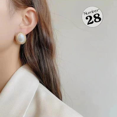 Number28 - 耳環 金邊珍珠造型耳針式抗過敏耳環 282458