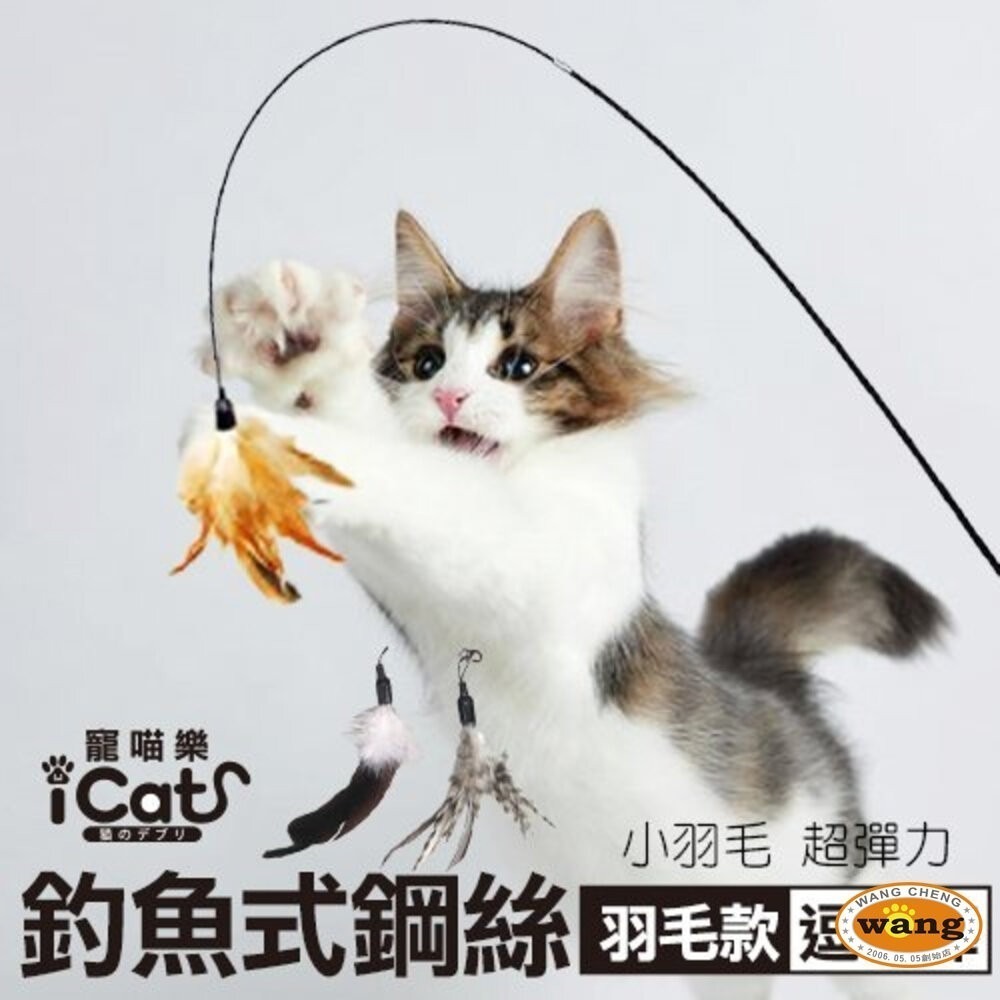 1.彈性鐵絲、羽毛構成貓咪最愛的遊戲模式