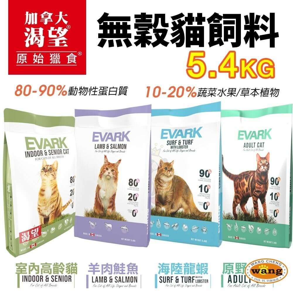 EVARK 渴望 無穀貓飼料 5.4kg【免運】鮮雞 海陸龍蝦 羊肉鮭魚 室內高齡貓 無榖貓 貓糧『林口旗艦店』