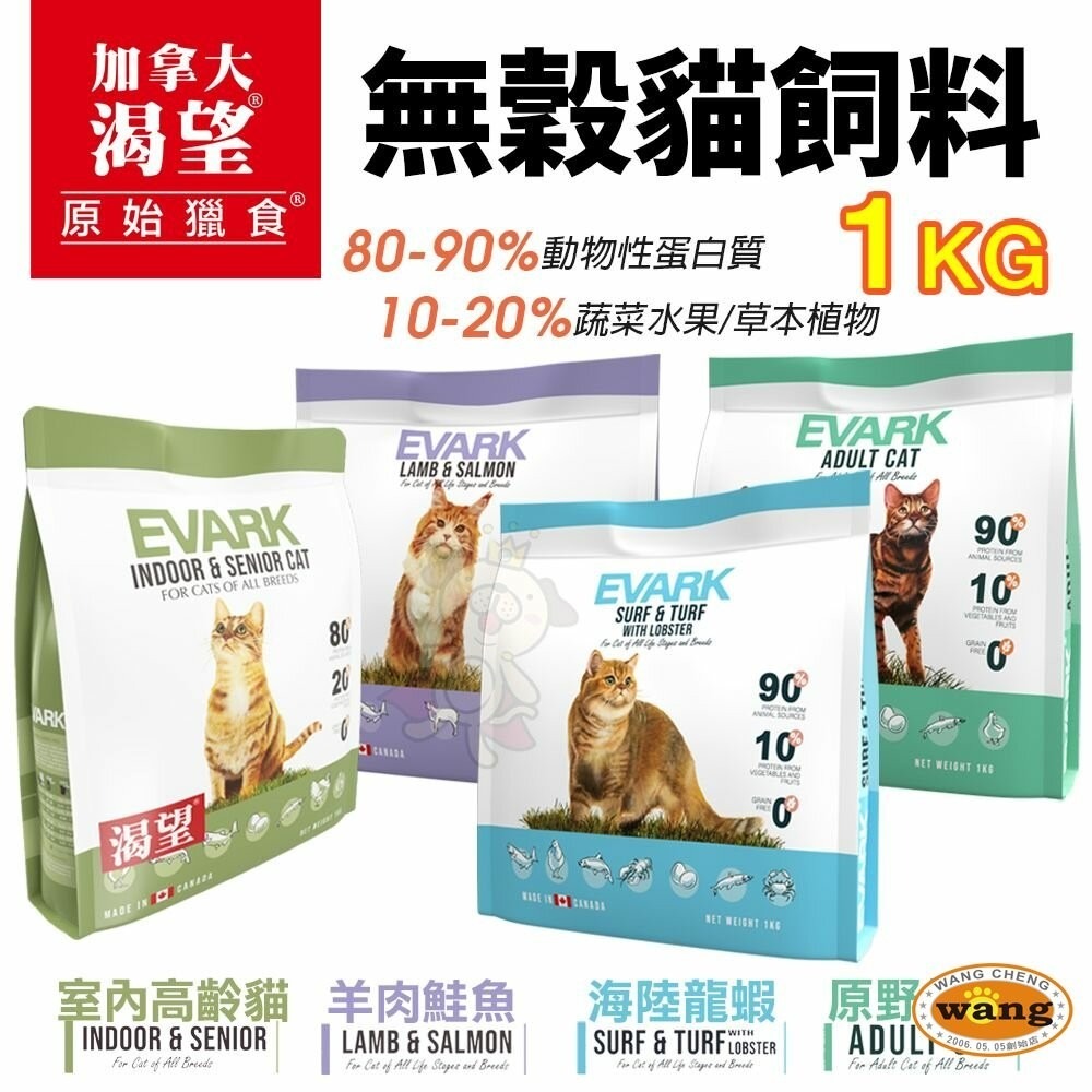 EVARK 渴望 無穀貓飼料 1kg【免運】鮮雞 海陸龍蝦 羊肉鮭魚 室內高齡貓 無榖貓 貓糧『林口旗艦店』