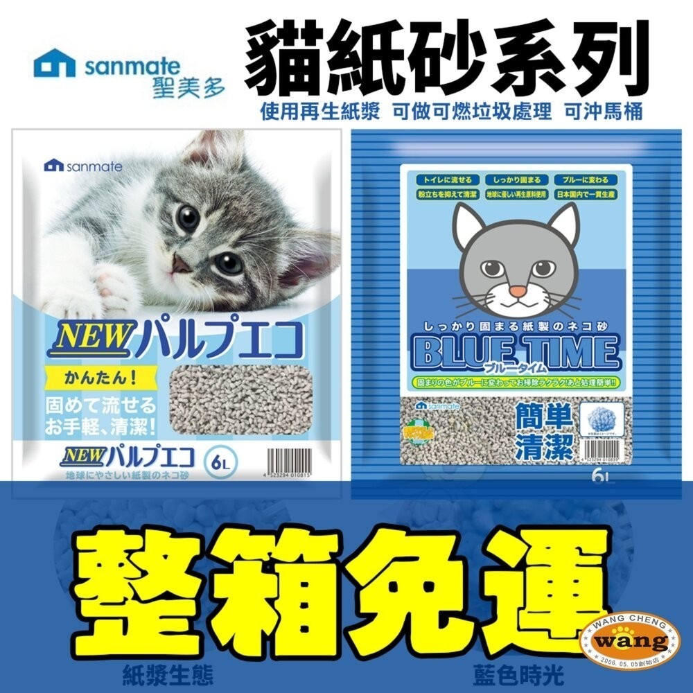 商品名稱:Sanmate 聖美多 貓紙砂 6L 12L【8包免運】紙漿生態 藍色時光 再生紙漿 可沖入馬桶 貓砂『WANG』