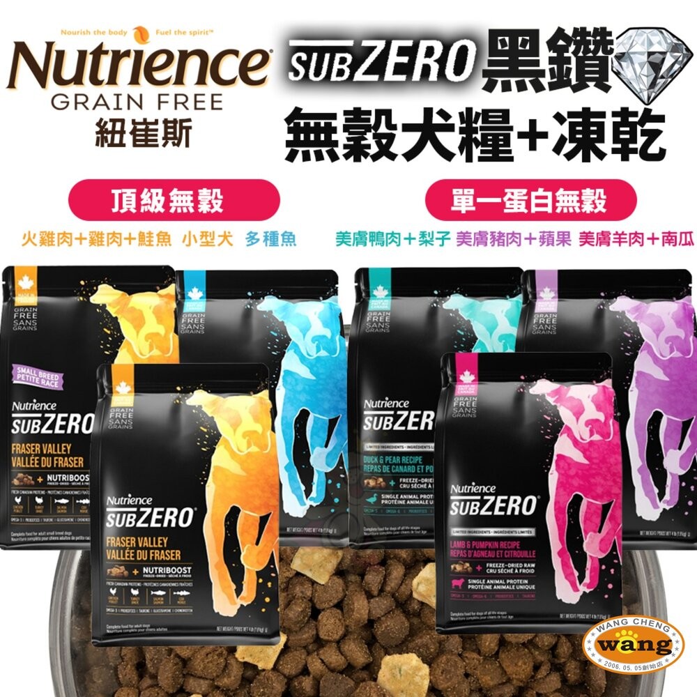 鴨肉, 鱒魚, 羊肉, 鮭魚粉, 鯡魚粉, 鱈魚粉, 平鮋粉, 青豌豆, 紅扁豆,