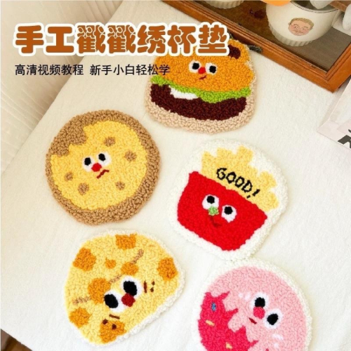 戳戳繡 杯墊 聖誕節禮物 生日禮物 diy手作材料 手作材料包 漢堡 薯條 起司