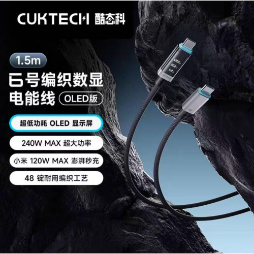 ❤️酷態科 6 號編織數顯電能線(OLED 版)是一款具備創新特性的充電線。 其長度為 1.5m,能夠滿足日常多種場景下的使用距離需求。 該充電線支援 240W MAX 的超大功率充電,在快充領域表現突出,特別是各種充電設備,而針對小米設備,可實現 120W MAX 澎湃秒充,為配備相應快充技術的手機等設備迅速補充電量。 同時,它採用了 48 錠耐用編織工藝,提升了線材的耐用性和抗彎折能力。