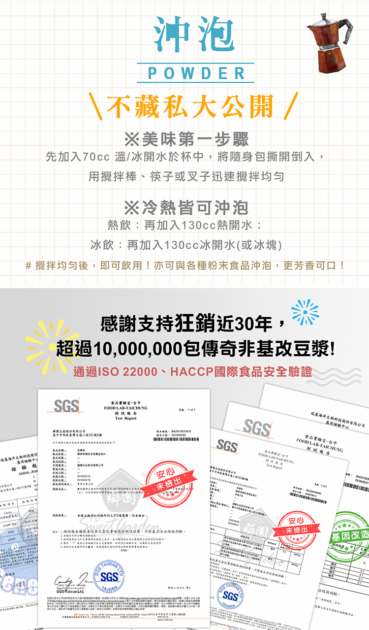 主要成份:黃豆(非基因改造)、麥芽糖、異麥芽寡糖