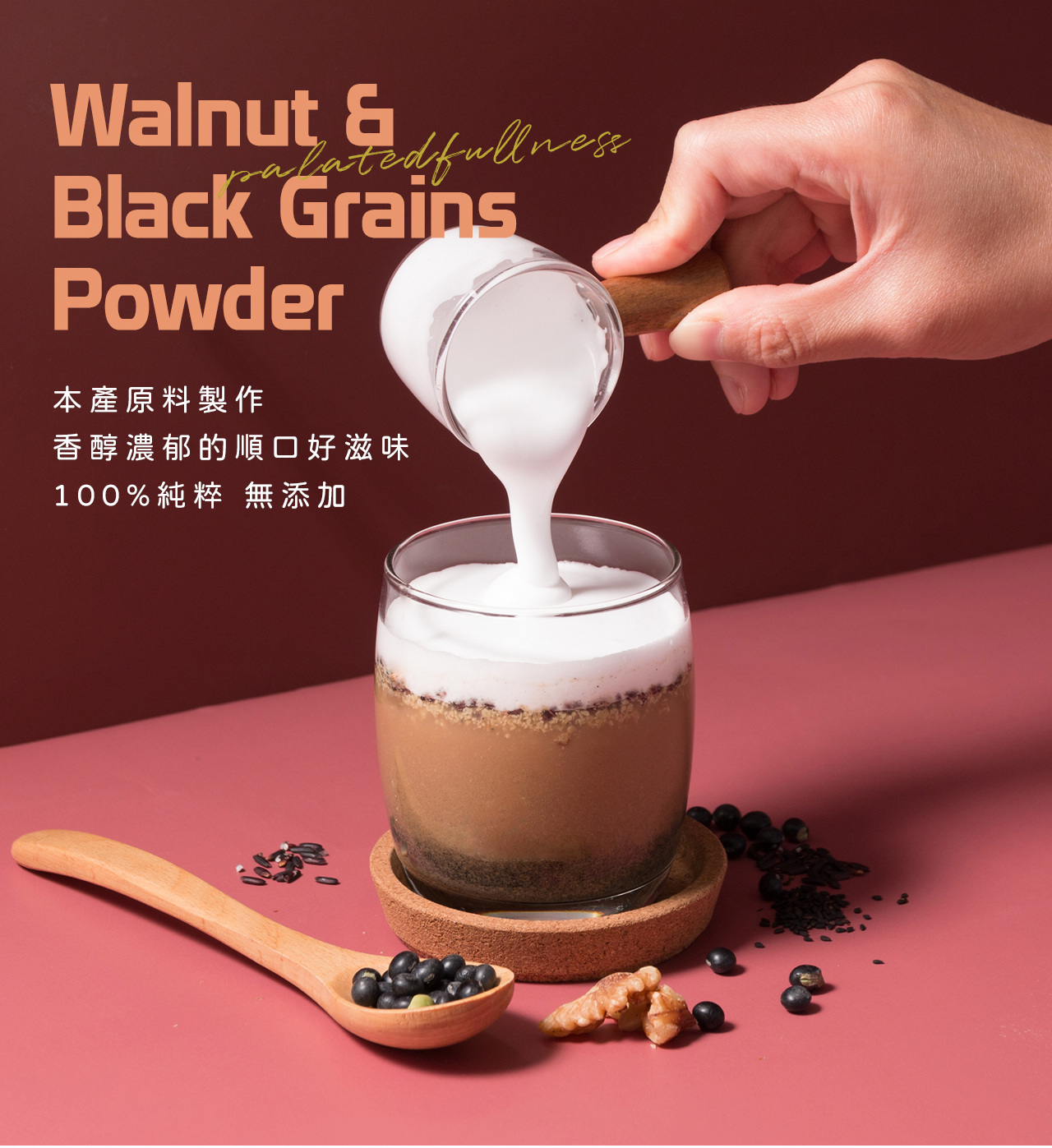 ※ 本產品含有黑豆、黑芝麻及核桃;對其會過敏者,請謹慎食用。