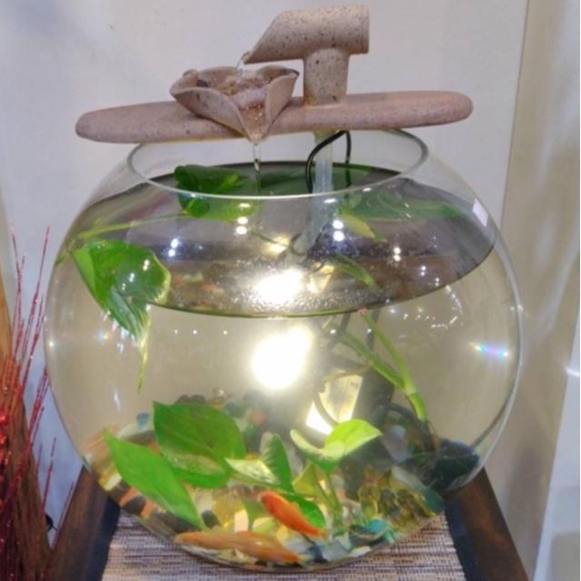 【娟兒藝品】玻璃魚缸流水組 ✔流水✔魚缸✔荷葉✔展示✔藝術品