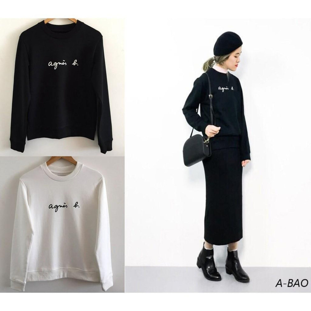 新款👫情侶推薦 日本 ag.b 小b 日本b經典草寫LOGO 男款 女款 2色 加絨 大學T 長袖 T恤