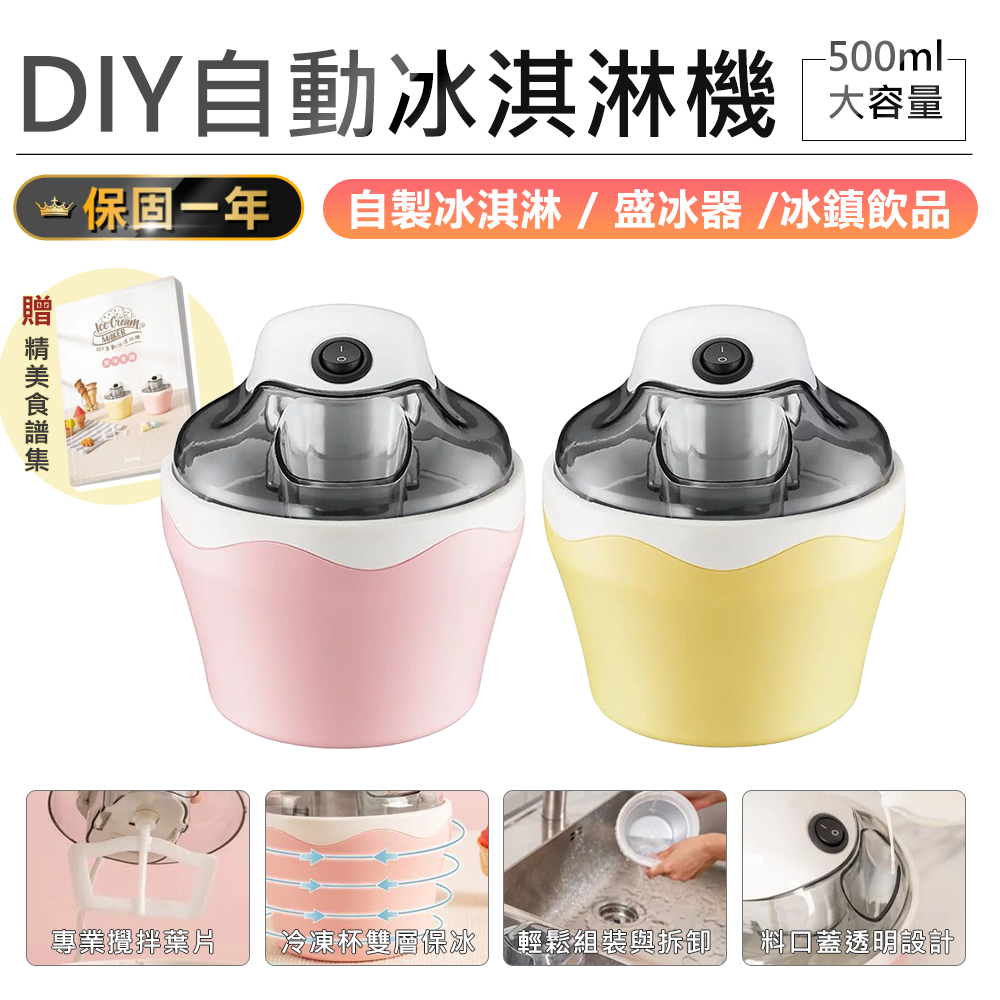 .容量:500ml (原料容量200ml以內,以防冰淇淋成形後膨脹溢出)