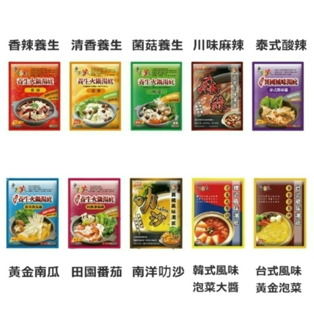 成份:鮮味萃取雞湯粒(玉米澱粉、雞肉、葡萄糖、白砂糖、胡椒、薑黃、酵母萃取物、胺基乙酸)、辣油(大豆沙拉油、辣椒、花椒)、孜然、乾辣椒、紅棗、草果、精鹽、白豆蔻、白芝麻
