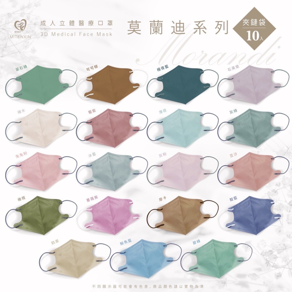 [新包裝/現貨] 盛藤天心&新寵兒 成人3D莫蘭迪立體醫療口罩10入-精美夾鏈袋包裝
