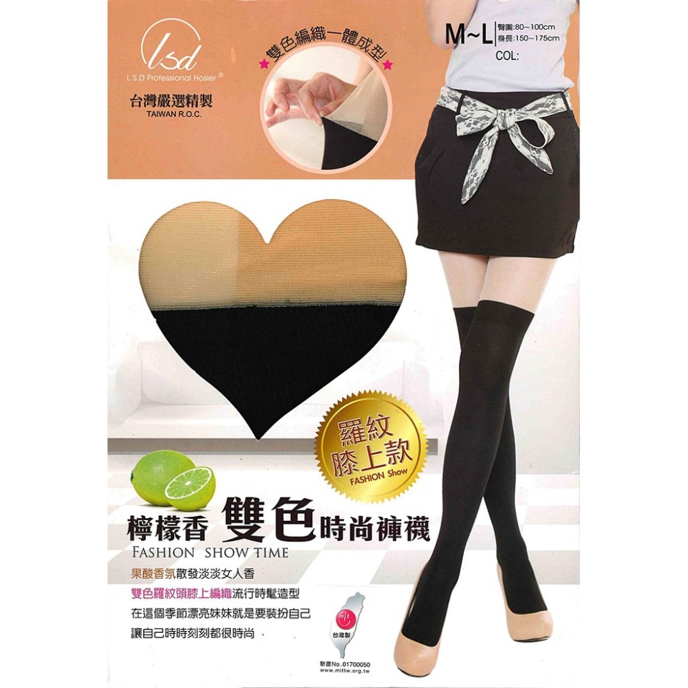 產品:經典羅紋 果酸雙色膚+黑假膝褲襪(檸檬香)