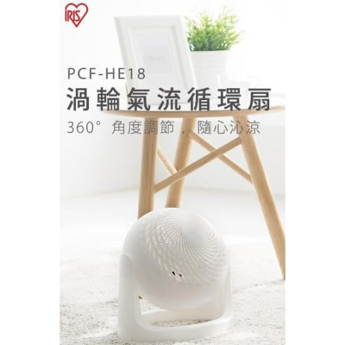 品牌:IRIS 型號:HE-18 渦輪氣流循環扇 360度調節 簡約輕巧 安靜 低噪音 新型羽型扇葉 適用7坪空間 有助於空氣流通 三階段式 風力調整 強力循環氣流 背後有手把方提拿