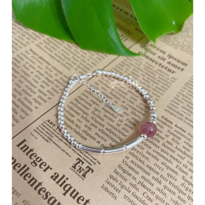 [啦啦小姐]竹節銀管,925純銀手鍊,草莓晶,銀珠手鍊