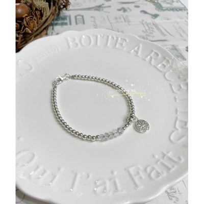 (啦啦小姐)925純銀手鍊,白水晶手鍊,生命之花,幸運鯨魚尾手鍊,整體純銀不過敏,氣質手鍊