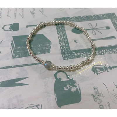 (啦啦小姐)拉長石純銀設計手鍊,925純銀手鍊,彈性線手環