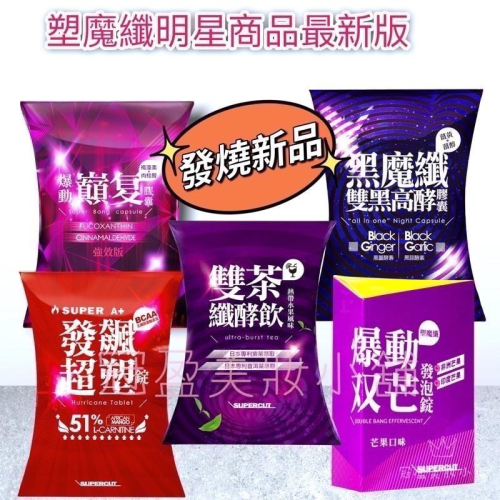 依照衛生署規定不得提及療效,用途及用法 請上網查詢或參閱官網,若有不便之處敬請見諒。 公司貨現貨不用等【小心別買到仿冒品】,附發票,全部最新效期 最新發表,成分再升級 SUPERCUT塑魔纖 雙茶纖酵飲-熱帶水果風味-1盒(20包/盒)(全素) 2026-06  SUPER A+發飆超塑錠30顆/盒(2021全新升級版) 期限至:2026-05黑魔纖雙黑高效膠囊30顆/盒 依外盒使用說明使用 期限至:新款 黑魔纖紫茶超酵膠囊30顆/盒 依照外盒使用說明使用 期限至:爆動巔复膠囊(強效版) 30顆/盒 期限至:2026-06爆動双芒發泡錠20錠/盒 期限至:請注意: 運送過程最上面一顆可能會有碎裂情形~介意請勿購買 快塑雙切發泡錠 20錠/盒 (柚子檸檬口味) (大餐飯前使用) 請注意: 運送過程最上面一顆可能會有碎裂情形~介意請勿購買 期限至:❌(僅代購不負責成效)❌ 黑魔纖、發飆超塑錠: 1.過敏體質、服用藥物者、特殊疾病患者,食用前請先諮詢醫師指示。 2.兒童、孕婦、哺餵母乳者、老年人及具心血管疾病者不宜使用。 3.本產品含有芒果、堅果、芝麻、麩質之穀物、大豆、奇異果及其製品,不適合對其過敏體質者食用。 巔复膠囊(強效版) 1.本產品含有綠咖啡萃取物,十二歲以下孩童、孕婦、消化不良與重大疾病患者不宜食用。 2.本產品含有肉桂,孕婦忌食。 3.過敏體質、服用藥物者、特殊疾病患者,食用前請先諮詢醫師指示。 爆動双芒: 1.嬰幼兒.孕婦、哺乳婦女、過敏體質、服用藥物者、特殊疾病患者食用前請先諮詢醫師指示。 2.含有芒果、堅果、芝麻、麩質 之穀物、大豆、奇異果及其製品,不適合對其過敏體質者食用。 請考慮清楚在下標,商品不提供試用,僅代購不負責成效,購物前請先三思後再下單