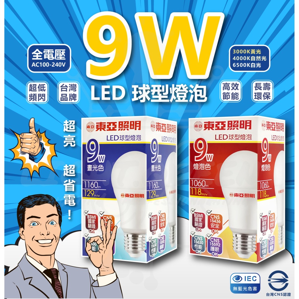 東亞 LED 9W燈泡 球泡 省電燈泡 節能燈泡 球泡燈 (白光/黃光/自然光) 球型燈泡 同樣舊款10W