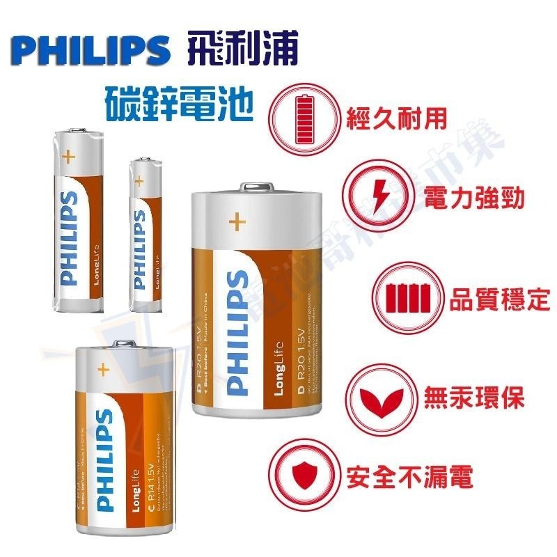 🔹PHILIPS 飛利浦 碳鋅電池 電池 1號電池 2號電池 3號電池 4號電池