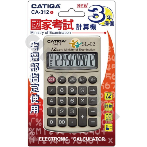 🔹國家考試 計算機 商檢認證 CA-312A 12位數 SL-02 CATIGA 國考計算機