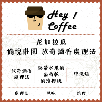【現點現烘】尼加拉瓜 愉悅莊園 波旁種 日曬 放奇酒香處理法 200克 ▎黑咔灰 Hey Coffee