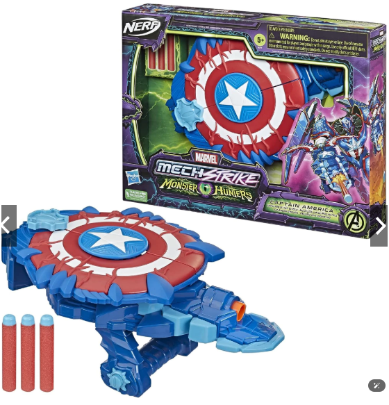 台灣現貨👍現貨含稅 孩之寶公司貨 HASBRO Marvel漫威機甲出擊系列怪物獵手 美國隊長盾牌(附3枚NERF彈鏢)