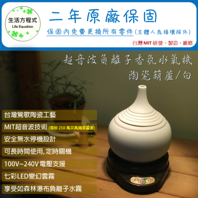 3. 經由本賣場售出之負離子香氛水氧機,所有機型都是二年保固 (原廠僅一年保固),除了上蓋、主體人為的損壞,其他零組件 (LED燈、風扇、霧化片、機板...) 【二年內一律免費更換】,買家只需負擔來回寄送的運費 (當時實際運費)。