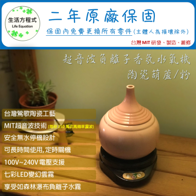 3. 經由本賣場售出之負離子香氛水氧機,所有機型都是二年保固 (原廠僅一年保固),除了上蓋、主體人為的損壞,其他零組件 (LED燈、風扇、霧化片、機板...) 【二年內一律免費更換】,買家只需負擔來回寄送的運費 (當時實際運費)。