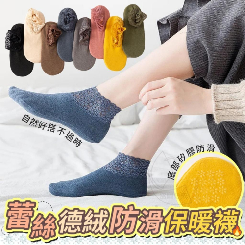 【現貨】蕾絲德絨防滑保暖襪 底部矽膠防滑 耐磨 耐穿 舒適透氣 好搭百搭襪