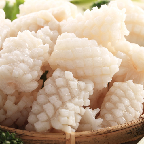 【大江生鮮】鮮脆刻花魷魚500g/每包!花枝/花枝花/魷魚花/全卷刻花/烏賊/墨魚/魷魚切片/花枝切片/冷凍生鮮食材批發
