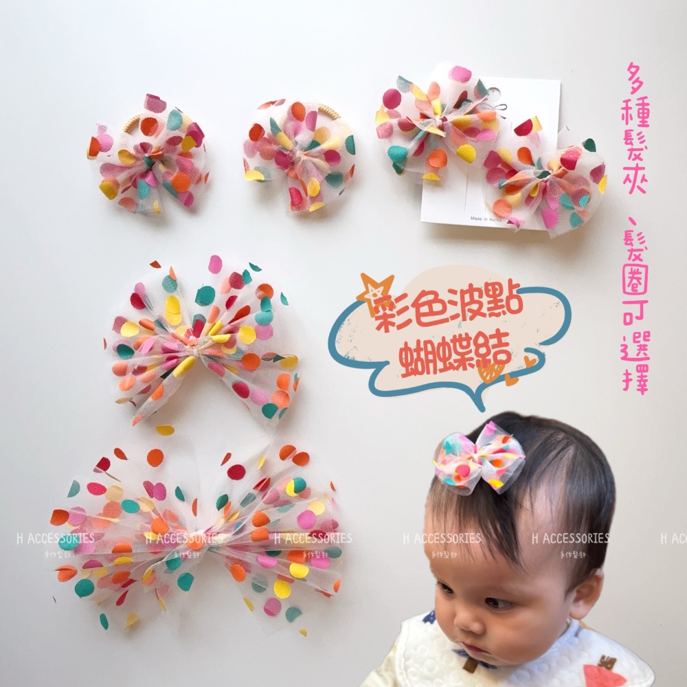 現貨免運@一支-彩色波點紗蝴蝶結髮夾蝴蝶結髮圈寶寶髮夾寶寶髮圈兒童髮夾女童髮圈小孩髮飾紡紗蝴蝶結清新綁頭髮公主夾