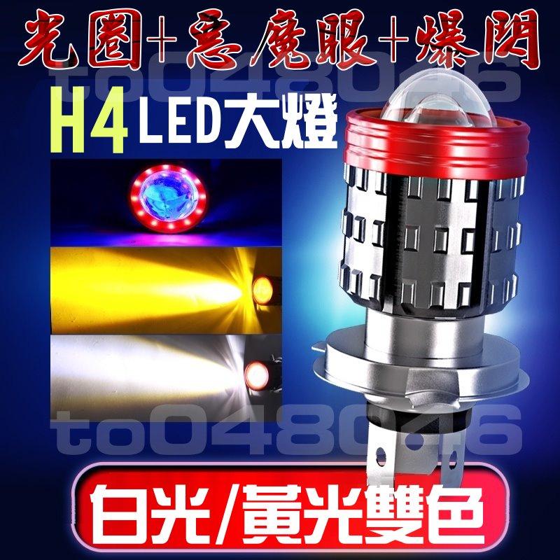 H4 惡魔眼 白光 黃光 雙色 爆閃 LED 魚眼大燈 直上 HS1 機車大燈 新勁戰 機車 摩托車 檔車 改裝 黃金光