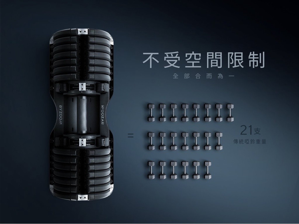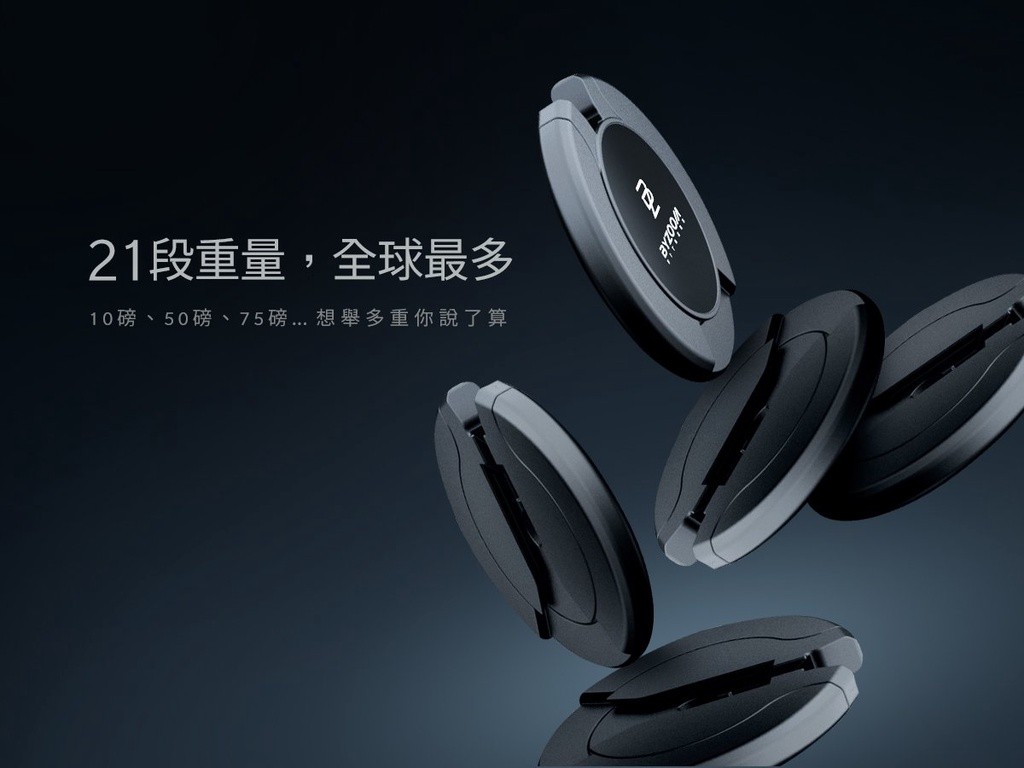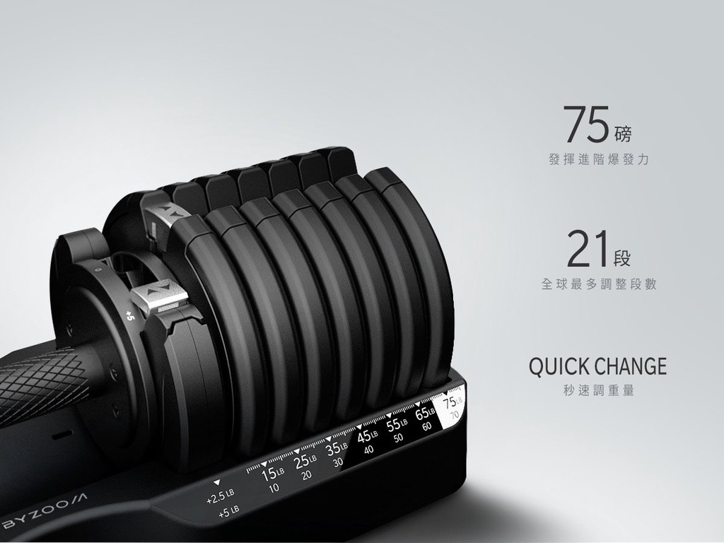 為了健身需求者所設計的可調式啞鈴,「極速調整」、「21種重量」、「大重量」、「金屬咬花手把」