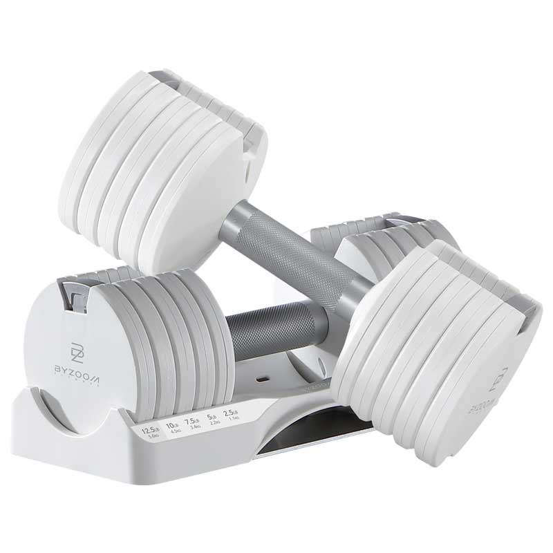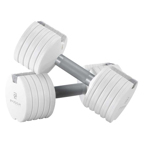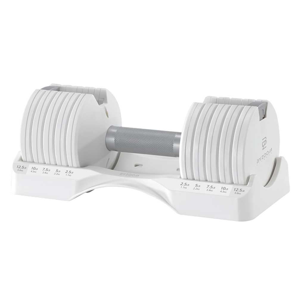 | 台灣開發團隊研發設計的BYZOOM FITNESS 12.5LB 可調式啞鈴 可從2.5 LB ~ 12.5 LB做共 5 種簡易重量調整 不論是剛開始運動的初階使用者或是進階的居家訓練者皆可針對不同肌群輕鬆調整適合重量, 一組調整壺鈴即可滿足多個使用者重量的需求,在家隨時想運動就運動,懶惰外出運動從此不再是藉口。 |