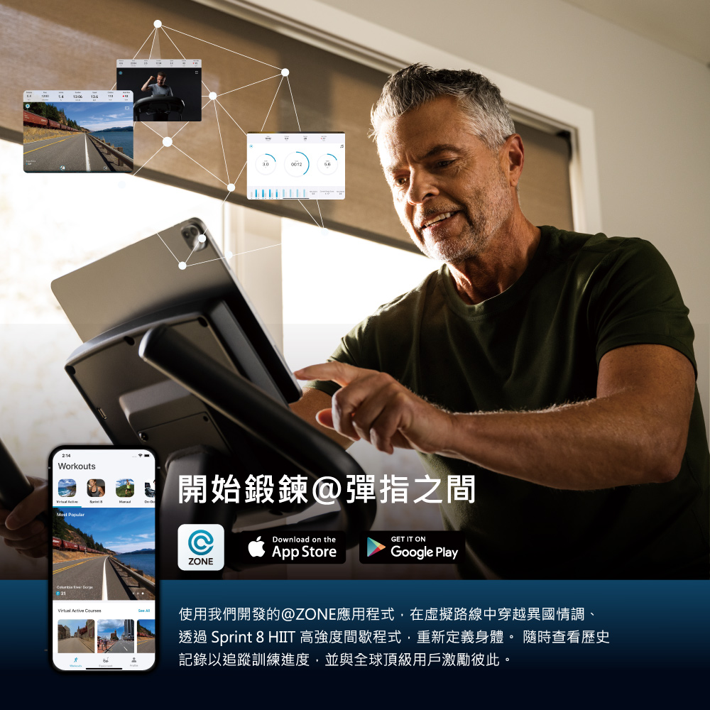 娛樂功能 可放置智慧型裝置閱讀架、適用多款熱門健身APP