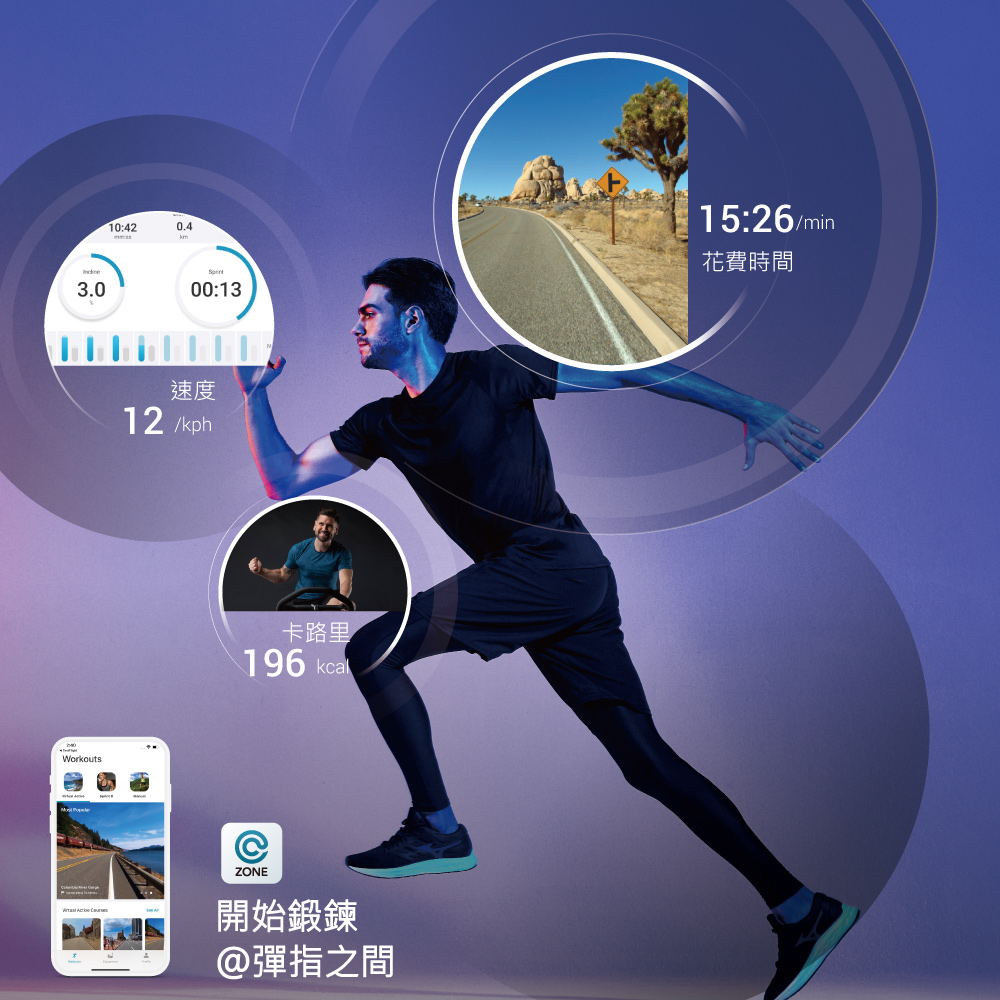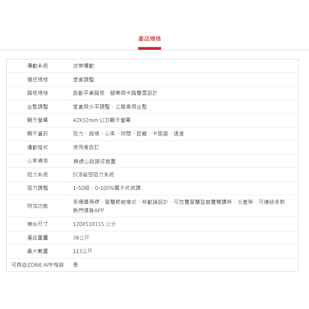 附加功能 智慧節能模式、移動論設計、可放置智慧型裝置閱讀架、水壺架、可連結多款熱門健身APP